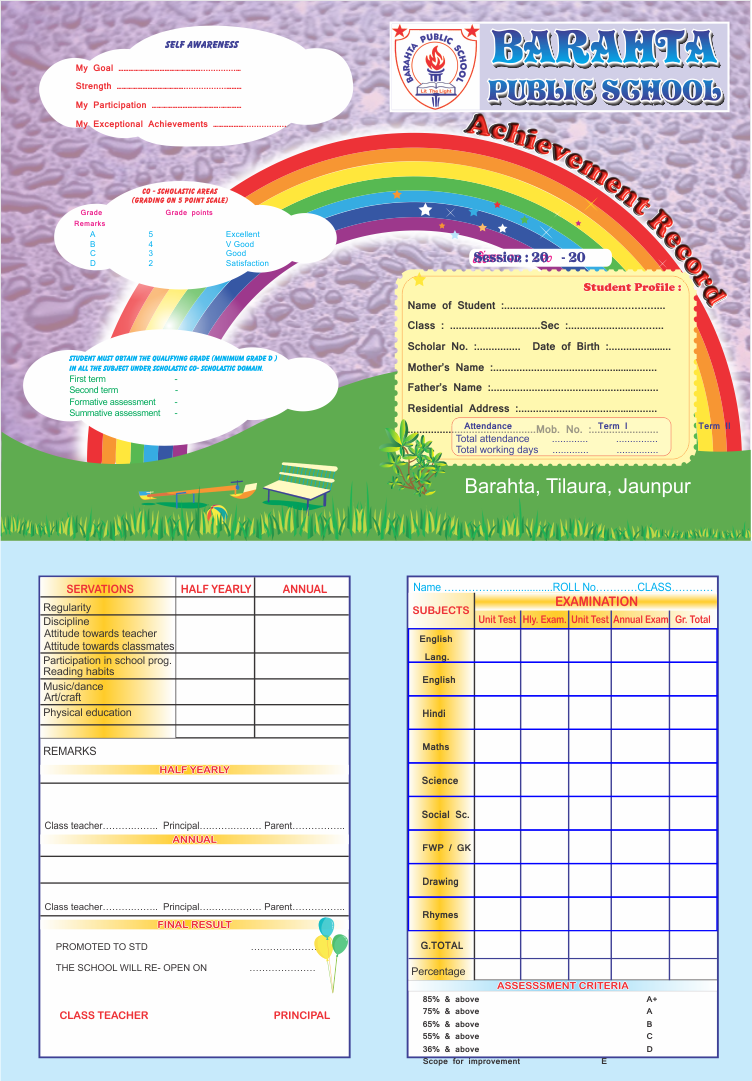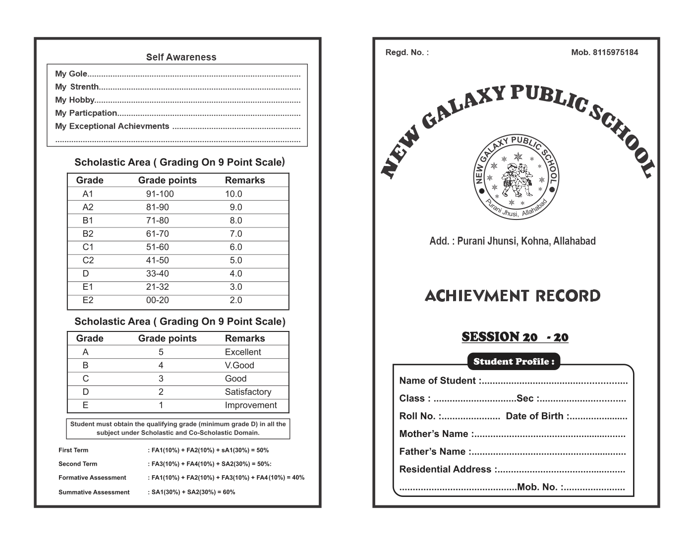 A record of a student/candidate for his/her academic performance as grade or marks.
